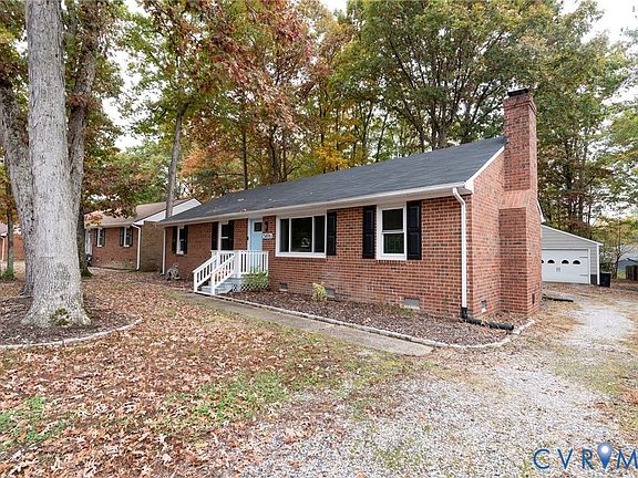 One Story Living at its Finest! This BRICK RANCHER  is Beautiful in Every way from the Gorgeous Renovated Kitchen and Bathrooms to the Detached One and a Half Car Garage!!  Recessed Lighting, Granites Stone CounterTops, Newer Cabinets and SS Appliances-Updated Everything!   Plenty of Counterspace for Entertaining, An Island for your Breakfast Bar Open to the Lovely Dining and Living Rooms. The Family  Room has a Warm and Welcoming Brick, Wood Burning Fireplace and the Whole House Boasts Luxury Laminent Wood Style Flooring.  The Primary Bedroom has a Custom Tile  Primary Bath.   The 1 1/2 Car Deatached Garage has finsihed Walls to make this your own. Vinyl Windows and Nearly 1/2 an Acre.  There is a Large Laundry Room, with Renovated Guest Bath.  This Wonderful, Ranch Style Home in Desirable Chesterfield County is waiting for You!