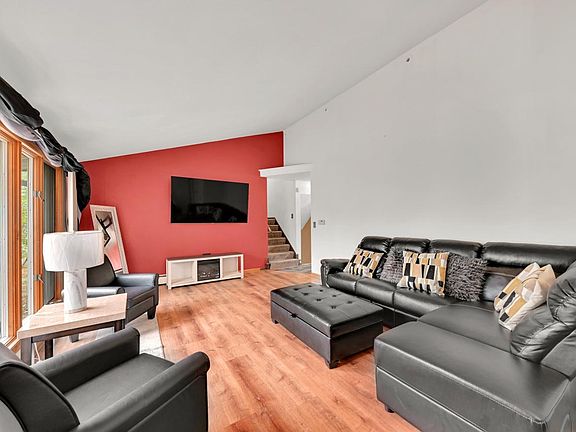 Welcome home to this sun-filled split-level in Milwaukee's desirable Bradley Estates! Set on a generous lot with mature trees and a playful yard, this home offers space to live, relax, and entertain. The airy main level features vaulted ceilings, an open living and dining area, and a wall of windows overlooking the backyard--perfect for gatherings or cozy nights in. The kitchen blends charm and function with dark cabinetry, brick accents, and ample storage. A finished lower level adds extra living space for movie nights or a home office, while the bright three-season room invites morning coffee or quiet evenings. With 4 bedrooms, 1.5 baths, an attached garage, and a spacious yard, this home delivers comfort and versatility. Just move in and enjoy!
