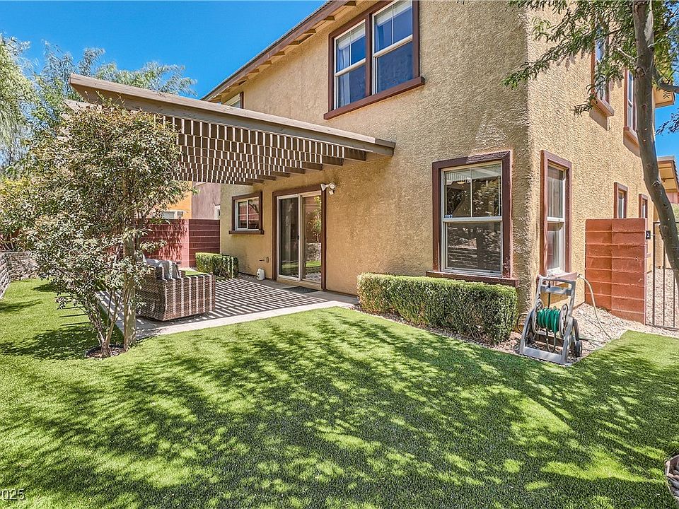 WILL SURPASS EXPECTATIONS! Comprehensively refreshed and updated by attentive long-term local ownership with new floors, blinds, toilets, paint and brand new stainless steel kitchen appliance package featuring the Samsung Family Hub refrigerator (with the "Inside View" display screen). 3 BATHROOMS including 1 BEDROOM & 3/4 BATHROOM DOWNSTAIRS! MOUNTAIN VIEWS from the PRIVATE BACKYARD and covered patio. BEDROOMS DO NOT SHARE WALLS! ADT alarm and RING are already installed and ready for your new account set up. Washer & brand new Dryer (Sept 2025) are set up and ready. ELECTRIC FIREPLACE & WALL MOUNTED FLAT SCREEN TV WERE RECENTLY INSTALLED AND ARE INCLUDED. LADERA has wonderful playgrounds, pool and parks and is located in one of the best Summerlin South neighborhoods that Las Vegas has to offer. Minutes from Bishop Gorman, Downtown Summerlin & Whole Foods.