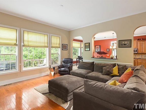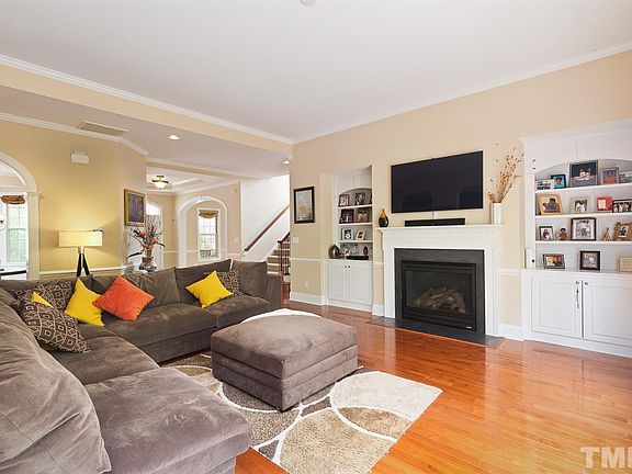 HUGE home in desirable Grandale! Features include 5 bedrooms, 4 baths, bonus, study. Master suite adjoins exercise room, balcony, has 2 walk-in closets. Very spacious kitchen features Silestone counters, double ovens, abundant cabinetry and beautiful tile floor. This home is on a quite cul-de-sac, is professionally landscaped and backs to a very private wooded area. Grandale is close to I-40 access, RTP, Duke and RDU airport is only a 10 minute drive! ** ALARM IS ARMED**
