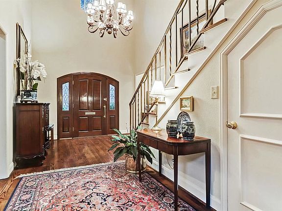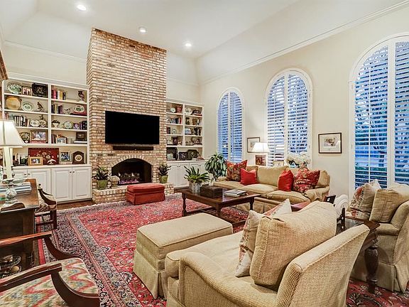 Galleria area patio home with Primary Bedroom down tucked away on a quiet corner lot. This updated traditional offers high ceilings, elegant millwork, floor to ceiling windows and a large yard space with 15X12 covered patio. Hardwood floors, travertine accented bath, and wood-burning fireplace with gas logs are just a few of the features that await you. This special homesite features only a rear neighbor and offers private views of the back and side yards from the downstairs primary bedroom and living areas. Generous first floor living with two secondary bedrooms up featuring ensuite baths. Recent updates include, HVAC system, gutters, ceiling fans, inside paint, garage paint, finished garage floor, wood shutters added, roof insulation, and dining room chandelier. Easy to maintain lock and leave Galleria area property with large outdoor space feels secluded and yet is in the heart of everything Uptown has to offer.