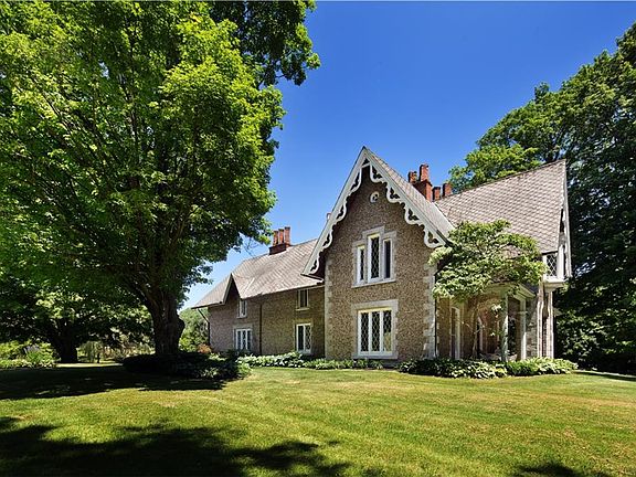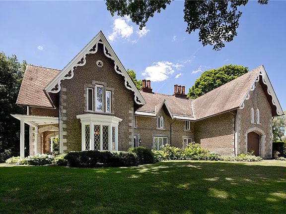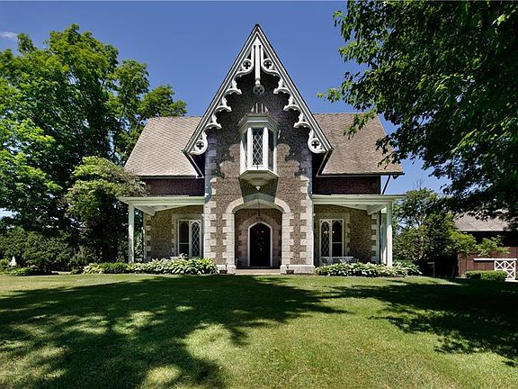This Architecturally significant Cobblestone Landmark, built in 1850 has only had 3 owners. The cobblestones were brought in from Lake Ontario. This home which has been a working Farm and features 142 plus acres, 11.50 of which is zoned business - 1000' front 400' deep. Public water all the way up Hamilton Rd and Route 5. 2 Barns one has heat in it and makes a great workshop, Large garden shed, 5640 sq.ft living space with 2 front parlors, family room, formal dining room, office, mud room, 6 fireplaces, 8 bedrooms possible 9, large attic with much potential, great basement, 2 septic tanks.2 ponds. Enjoy the patio and watch the wildlife at work or play. This house is NOT a Historic Landmark