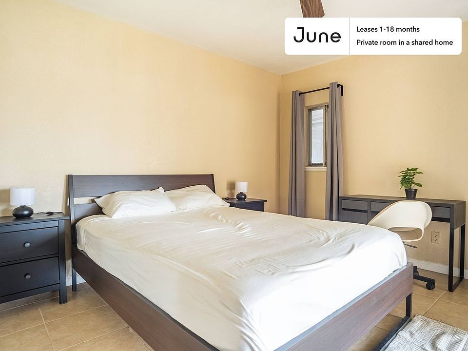 This Queen room in Pecan Springs-Springdale is available on a 12 month lease or a flexible short term (31 to 364 days) lease. You pick your custom start and end date. Monthly rent rate is determined by furnishing preference, move-in date and move-out date. Speak to a June representative for recommendations on the best stay duration for the lowest rate.