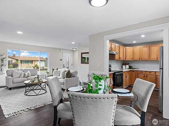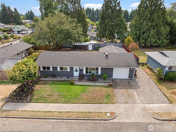 Fully updated and ready to move in! This charming 3-bedroom home in a quiet North Tacoma neighborhood has been refreshed top to bottom—inside and out. The bathroom features a new vanity with quartz counters, custom tile, updated flooring, and new lighting. The kitchen shines with quartz countertops, tiled backsplash, and warm wood cabinets. French doors lead to a huge backyard with a bonus outbuilding—perfect for crafts, a chicken coop, or a pet enclosure. A great mix of character and modern updates in a fantastic location!