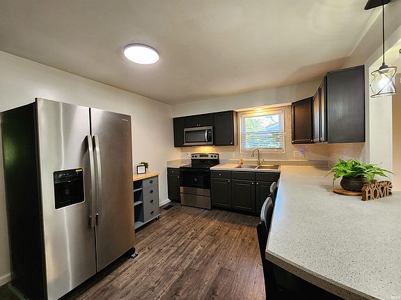 Northside? *check* 4 Bedroom? *check* 2 Bath? *check* This lovely, updated home checks all the boxes! This home has been totally updated from floor to ceiling (literally!) Beautiful Wood laminate flooring sweeps through the open concept living room/kitchen and throughout the home! The living room has a large picture window for natural lighting and a new ceiling fan. The breakfast bar has lovely pendant lighting, brand new top cabinets, new double sink with pull down faucet, and stainless steel appliances! Three guest bedrooms are located to the south of the home and all have brand new light fixtures, Wood Laminate flooring and fresh paint. The first bath is conveniently located near the bedrooms and has a pedestal sink, tub fixtures, mirror, light and tile surround! Down the hall off of the kitchen, is the owner's bedroom. The room has a double closet, new light, fresh paint and lovely Wood Laminate flooring. Across the hall is the 2nd bathroom that has a new mirror and lighting in the water closet, new vanity, mirror, sink, lighting, faucet in the main area, new tub, surround, faucet, and shower head. It has been completely painted and lovely Luxury Vinyl Tile flooring to complete the look. Located off the back of the home is a large living room with double ceiling fans offers even more living space! This room offers so many options! Right outside the back door is a large deck that has new railings for outdoor entertainment. A nice fenced yard has a large storage barn for additional storage. Updates include: fresh paint throughout, flooring throughout, all light fixtures, stainless appliances, kitchen cabinets, bathroom cabinets, bathroom sinks, fixtures, mirrors, new bathtub and surround, new tile tub surround, new water heater, new roof on garage and so much more!