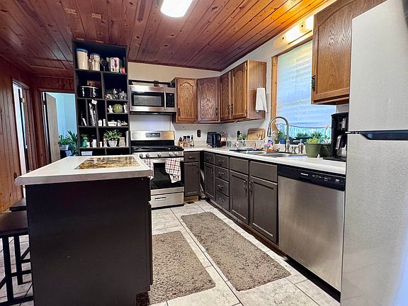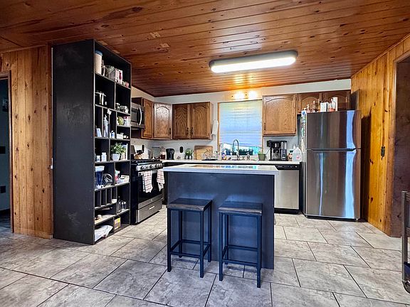 Great home with updates at an affordable price! This 2 bed, 1 bath home has a unique layout and offers a large sunken living room, kitchen with island and large dining space. Updates include new carpet in bedrooms, new stainless steel gas range and refrigerator, bathroom with LVT flooring and tile surround on bathtub, plus fresh paint inside and out. Extra parking options in front, fenced back yard with alley access to old garage that could be revitalized with some TLC or use as workshop - currently does not have an overhead door. Wood stove stays but is not hooked up. Convenient location in Black Hawk near I-90 and lower tax rate to help save on your monthly payment! Buyer and buyers agent to verify MLS data.