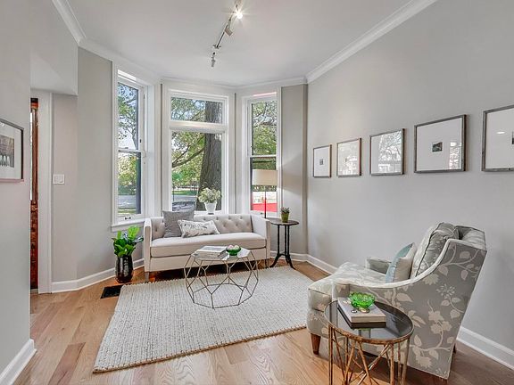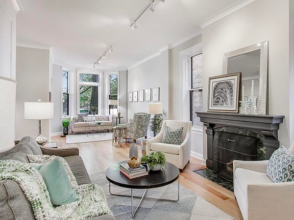 Breathtaking Greystone Row House PERFECTLY situated across the street from Nichols Park and super easy walk to shops, restaurants, Univ of Chi, transport, etc.  Expect all the charm and character of a 1909 classic with all the updates and upgrades that honor the home and make for great living.  Be TOTALLY surprised with the great light, high ceilings throughout and thoughtful + flex spaces. Main floor has double living room with wood burning fireplace, combo dining and oversized kitchen with loads of prep and serve space +stunning views in every direction, and a jewel of a powder room. Walk out to new deck, fenced in spacious and lush back yard.   Upstairs find three bedrooms with ensuite baths, primary with an original fireplace and loads of light and more great views. Bright lower level is another great surprise with extra-large bedroom, family room, work room, laundry room, bath and loads of storage.  Most work including tear off roof/HVAC/tuckpointing/kitchen and baths done in 2019, whole house refresh + new lower level floors, back deck, fenced yard in time for your visit!  This is one happy house!  Enjoy!