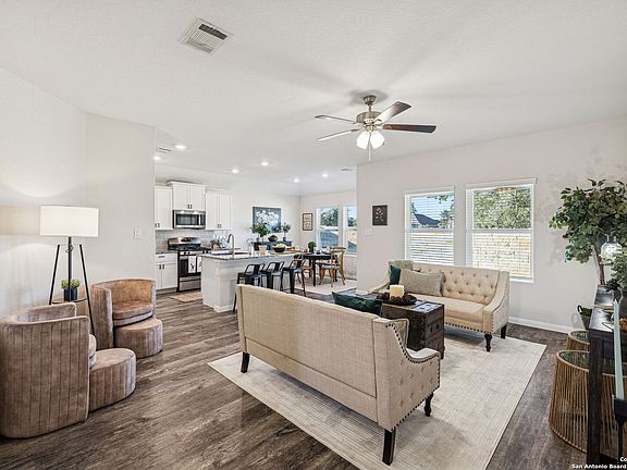 Discover the peaceful lifestyle you've been looking for in Hidden Trails - Wildwood, one of Bulverde's most sought-after communities. This beautifully finished 4-bed, 2-bath home sits on a larger lot with a 3-car garage and offers modern comfort surrounded by Hill Country charm. Enjoy mornings on the patio, or take an evening walk on the miles of community trails. Hidden Trails residents love the two pools, playgrounds, stocked catch and release pond, and friendly neighborhood vibe. All this just 15 minutes from H-E-B, dining, and shopping, and an easy drive to New Braunfels, Boerne, Canyon Lake, and San Antonio. Come experience why life in Hidden Trails feels like home the moment you arrive.