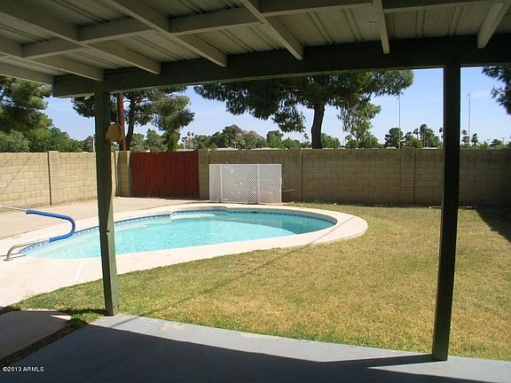 Rare to find patio/duplex home. Affordable Arcadia home with private pool, views of Camelback Mountain, 2 bedrooms, 2 bathrooms, RV gate and parking pad. East side of a duplex/twin home ONLY for sale. Wood laminate flooring added recently. Master bathroom remodeled into shower. Desirable north/south solar exposure. Located away from busy streets near homes of much higher values. No homes behind adds privacy and views of the Papago Buttes. Veritas School. Single covered parking spot located closest to home. Circular drive for convenience means no backing in & out. Owner felt privileged to be able to live in the Arcadia area with a private pool. Very close to Ingleside Middle School and the favorite Arcadia Park at 56th Street & Osborn