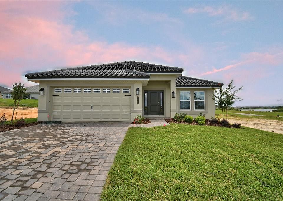 Under Construction. This 2200 Sq ft home has 4 bedrooms and 3 baths, 2 car garage, lots of entertaining space and luxurious details throughout! Upon entering you will enjoy the open concept great room/dining room/kitchen with 10’ ceilings, wood look plank tile in main areas, granite countertops throughout, 5 ¼ inch baseboards, wainscotting in dining room and much more. The owner suite is spacious with Tray Ceiling w/crown molding. Ensuite has double sink vanity with extra storage drawers, linen closet, tile separate shower w/glass door, nice tub, etc. The home also has a second owner suite with ensuite and a large walk-in closet. 2 other bedrooms in the home share a oversized bath with linen closet, tub-shower combo, separate toilet, double sink vanity with storage drawers. The exterior of the home has a tile roof and patio paver driveway, and patio paver covered lanai. This community is gated, has a gorgeous clubhouse with fitness center, pool overlooking the lake, basketball court, tennis court, playground, and community boat ramp. Photos are of a finished 2200 . Actual colors and finishes may vary. This is a must see home.