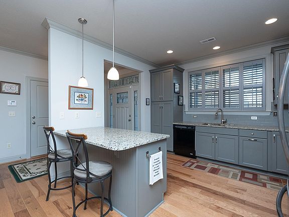Plantation shuttersCovered front porchTwo-car garageOverlooking the private yardExcellent prep spaceCustom backsplashKitchen offers granite countertops