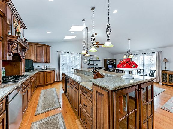 Amazing Gourmet Kitchen Sets this home apart! Loads of cabinet space, granite countertops, SS appliances, wine/beverage fridge, gorgeous mosaic over 5 burner cooktop, herb window & huge breakfast island! Large LR/DR enhanced by volume ceiling w/skylights; Remodeled FR w/stylish gas FP & Finished Rec Rm in BMT w/lots of storage cld b great Office, 4th BR or for related living/In-Laws; Neut. freshly painted in today's tones; Hardwood & trending hardwood style ceramic & vinyl throughout; New carpet up stairs & in 3 BRs; Master BR has direct access to BTH; Both BTHS updated; Fabulous Sun Room w/volume ceiling, fan, both wine & beverage refrigerators; Sliding doors lead to Private cedar fenced yard w/brick paver patio, backs to Spring Brook Prairie Preserve w/bike & jogging paths & dog park! Close to Knock Knolls Park & Nature Center. Excellent Dist. 204 Schools close by; Many new & newer upgrades, updates & mechanicals... Move-in & enjoy Pool this Summer! (OR Negotiable: Pool Removal)
