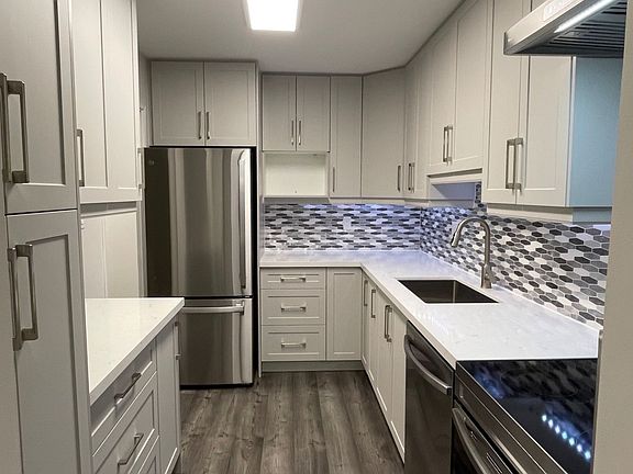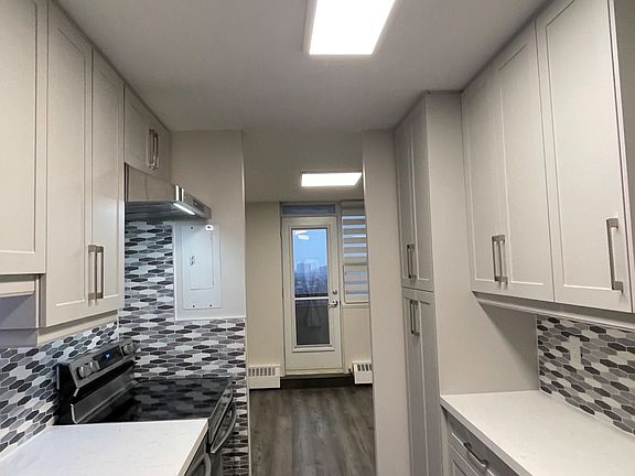 This newly renovated spacious one bedroom, one bathroom condo features quartz countertops, backsplash, all-new appliances, light fixtures, kitchen under cabinet lighting with remote, laminate flooring, window coverings and a spacious, large balcony with breathtaking panoramic city line views. The open-concept design maximizes space and natural light, creating a modern and inviting atmosphere. Enjoy the convenience of heat, hydro and water included, along with one underground parking spot and Rogers cable & internet.The building offers excellent amenities, including a female sauna and male sauna, party room, tennis court, BBQ area, outdoor pool, bldg bicycle rack storage and visitor parking. Located just steps from Caledonia Station, you'll have easy access to major transit routes, shopping, dining, and more. Perfect for anyone seeking a well-located, fully updated condo with fantastic views, and a wealth of amenities. Don't miss this opportunity -Schedule a viewing today! **EXTRAS** S/S Stove, S/S Fridge, S/S B/I Dishwasher, S/S Rangehood Fan With Remote, Zebra Window Blinds, Microwave, Balcony Wall Motion Sensor Light, Portable A/C (Bedroom), Window A/C (Living Rm)