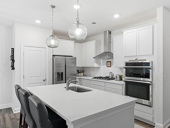 Main-floor primary bedroomThoughtful finishesOpen layoutSpacious inviting feelQuartz countertopsBuilt-in double ovensGas cooktop