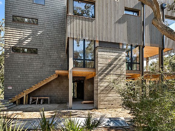 In-ground pool and spaGas fireplaceHome elevatorModern horizontal plankingRooftop deckSouthern tropical breezesThird-story private covered porch