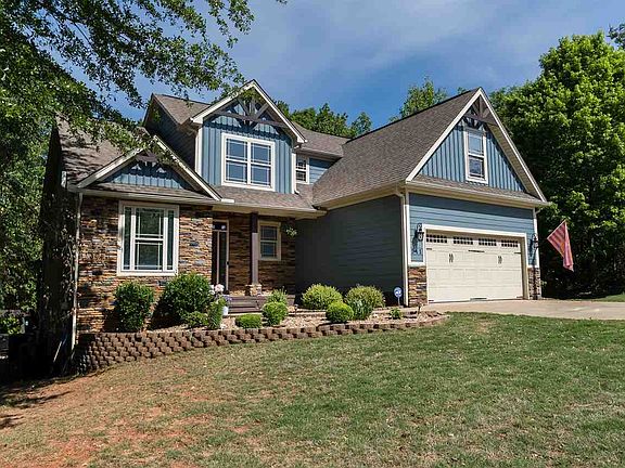 DISTRICT 2 ROLLING RIVER HOME. Prepare to be amazed with this craftsman-style, basement home! 5 BR, 3.5 BA, plus bonus, home has it all. First level has master BR with tray ceiling, large great room, custom kitchen with granite. Second level has 2 BR with BA and bonus room/extra bedroom. Tons of attic storage with 3 separate access doors. Second floor overlooks the great room with gas fireplace. Lower level has walkout finished basement with 1 BR, workout room (or 2nd BR) and massive game room/theater room with 3D projector and 130 inch screen, and an amazing storage room. Walk out the back door through screened-in porch to your backyard oasis. Watch a movie from the porch or enjoy watching it from the in-ground salt water pool with slide, there is something for everyone. Custom pool deck, large, wooded lot with beautiful water views, and additional 12x20 storage unit at back of property. Total property just under 1.5 acres. Convenient to top schools and to all that the Boiling Springs area has to offer. Sellers have just installed a brand new pool liner that is gorgeous!! Must see everything this home has to offer. **Seller has installed a new HVAC unit for the upstairs.