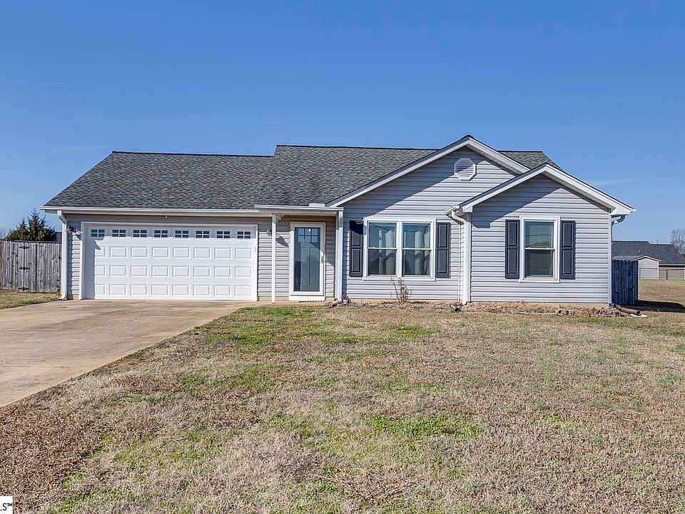 This inviting three bedroom, two bath ranch style home delivers the best of single story living on a peaceful 0.47+/- acre level lot. A wide driveway with a convenient turnout allows for ample parking and sets the tone for the space found throughout the property. Inside, the open concept layout creates a natural connection between the living room, dining area, and kitchen, making the home ideal for everyday living and casual entertaining. The spacious living room is filled with natural light from large windows and features clear sight lines across the space to the sliding glass doors to the patio and fenced backyard, extending the living space outdoors. The kitchen is thoughtfully designed with ample counter space, abundant cabinetry, and conveying appliances. Just off the kitchen, a charming breakfast area creates a comfortable setting for morning coffee or relaxed meals. All three bedrooms are comfortably located away from the central living spaces. The primary suite features a larger bedroom and ensuite bathroom, plus a dreamy walk-in closet. The other two bedrooms are also nicely sized and appointed, sharing access to the second full bathroom on the hall, designed with functionality and privacy in mind. A two car attached garage and a separate outbuilding add valuable storage options. Located in District 2 and just minutes from Boiling Springs amenities along Highway 9, this home also provides quick access to I-85, keeping daily commutes and travel convenient. Sellers are highly motivated, so be sure to schedule your showing today!