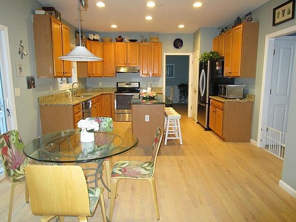 Located in the Pine Hollow section of The Ponds of Plymouth...This bright, spacious and beautiful 9 room 4 bedroom 2 1/2 bathroom home is waiting for you. Large eat in kitchen with NEW granite counter tops, NEW gorgeous quartzite top center island, NEW stainless steel appliances, sink and faucet. Beautiful red oak hardwood floors floors stripped and refinished with rubio monocoat May of 2018. Large family room with gas fireplace. Custom blinds in both kitchen and family room. Cathedral foyer, Open floor plan living room to dining room. MasterBed, masterbath and large walk in closet. Most of the lighting has been upgraded. Great corner lot with Irrigation. Sliders off kitchen to deck in the lovely backyard and the perfect place to enjoy your morning coffee or tea. 2 car garage and full basement. Furnace is prepped for AC, you just need the condenser. Many upgrades. Vinyl siding for easy maintenance. Beach rights to Whites Pond.