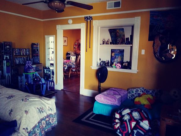 Victorian home with architectural features you'll not want to miss. The inviting and unique rounded front porch, original moldings and wood floor add to the upgraded kitchen, newer windows and A/C unit. The large back yard featuring a huge building, possible RV parking and alley access completes the picture of this vintage charmer.Washer and dryer included and 1 year home warrenty to arrange your private showing today! For sale by owner sold as is! Make app.