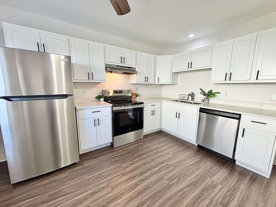 Private entryPatio spaceStainless-steel appliancesLvt flooringWhite cabinets