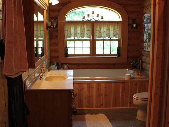 Very private, spacious log cabin on 62 acres. Open floor plan kitchen, dining room, and living room. Living room features a 2 story custom cut stone fireplace and a view of the loft above. Master bedroom, master bath (jetted tub), and laundry are also located on the first floor, creating a convenient living space. Plenty of storage with many large closets and large storage area in the basement. Family room in the partially finished basement. 2 garages: 1 attached 2 stall with a workshop loft above, 1 detached 3 stall. Refurbished early 1900's garage. Acres of tillable land. Close to town and I-80.
