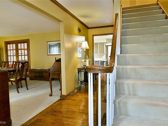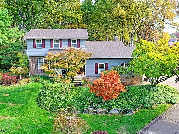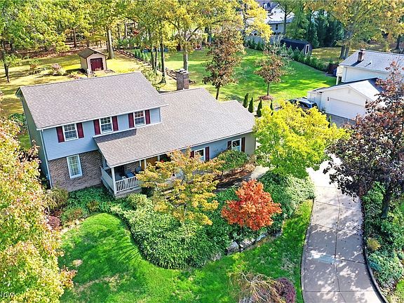 A setting like no other, with a home to match; this must-see Canfield estate is certain to sear the senses with its stunning good looks from the inside out! Tucked away within a bespoke neighborhood, the home sits high on the lot, overlooking the street as layers of colorful landscaping and stonework, cascade downward to follow the winding cement driveway. A covered front porch oversees it all, veiled in natural privacy. The large cement turn-around finds a two-car attached garage while the park-like backyard continues to find attributes such as a boldly painted rear deck and prominent storage shed. Through the front door, the carpeted staircase rises away to find the trio of second story bedrooms. Nearby, a generous living room spills away with plush carpets and French doors that partition off the formal dining space. A central kitchen excites with its wrapping countertops and bar top seating. Stainless appliances sparkle as natural light spills through sliding glass doors. Hardwood styled flooring continues into the wood lined family room where a brick fireplace is located. Revel in the finished sunroom where a casual bar makes great use of its extensive glass block. Completing the floor, a pass-through half bath find laundry services. On the second floor, bedrooms branch from the main hall as they join a tastefully updated full bath found just past the landing. The oversized master suite features its own full private bath as well. Below you will find a partially finished basement with ample storage and multiple other issues.