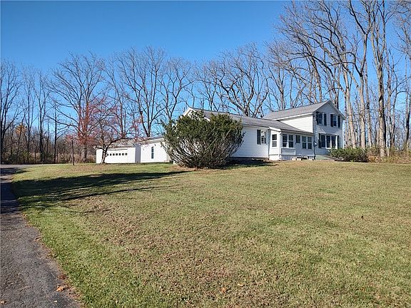 ~ Sitting Proudly at the Top of the Hill Is This 2 Possible 3 Bdrm. 1.5 Story Home, Per Estate 1861 Sq. Ft. with 5.5 Acres. Feel the Comfort as Walking in Greeted with a Sprawling Open Floor Plan from Front to Back, Eat In Center Kitchen w Island and Gas Fireplace Adjoining Both Formal Dining and Step Down to the Inviting Great Rm. Large Picture Windows and Atrium Door for Views of the Tree Lined Private Back Yard, Front Living Rm. with Second Gas Fireplace Ready for the Chilly Nights and Relaxing, First Floor Master with Two Closets, First Floor Full Bath and Laundry for Convenience, Second Story w Landing at Top of Stairs, Generous Sized Bdrm. and Walk in Closet . Updates to Also Include Vinyl Windows, Newer Flooring, 200 Amp. Service, Split w Heat and Cool, 2 Gas Fireplaces , Bonuses of Enclosed Front Porch, Covered Breezeway to Oversized Two Car Garage, Partially Fenced, Large Meticulously Manicured Yard w Mature Trees Secluded w Acreage. Following to Believed to Be - Boiler 5 Yrs, Oil Tank 5 Yrs, Septic 6-7 Yrs , Truley Loved - You Will Not Be Disappointed with What This Home Has to Offer !
