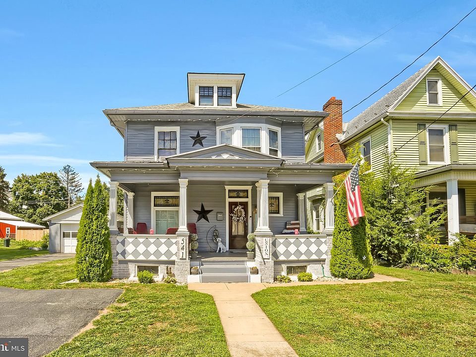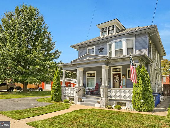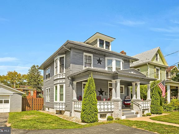 Boasting Beautiful Character and Charm, this 4 Bedroom, 1 1/2 Bath, 2 Story offers gorgeous woodwork and stain glass accents as you enter the foyer area with open stairs. Spacious open Living Rm/Dining Rm with shuttered window accents. Galley Kitchen. New addition first floor laundry room/mudroom leads to recently added brick patio overlooking fenced back yard. Great space to enjoy extended outdoor living. Second floor offers 4 bedrooms with recently refinished wood floors, an updated full bath, and a recently added walk in closet/storage room. Full walk-up attic offers extra storage. Detached oversized one car garage with electric and workshop space, Macadam drive for extra off-street parking. Lovely columned covered front porch welcomes you to this wonderful "Home Sweet Home"!!
