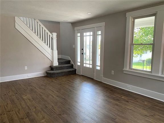 Home completely updated throughout New Kitchen all new stainless appliances and peninsula. Kitchen opens into Dining Room, LR is spacious with plenty of natural light beautiful Dec. FP. New flooring and lighting thru-out .Second fl. bedrooms features ample closets,.new carpeting . Awesome bath new fixtures vanity, tub w/shower , pocket door . Covered Front porch. Detached Garage, Plenty of off St parking in back. Level Lot