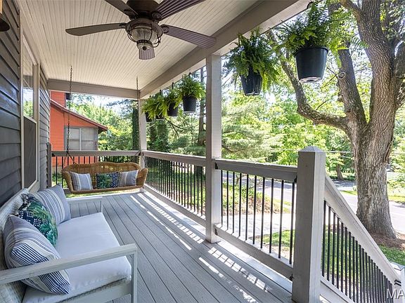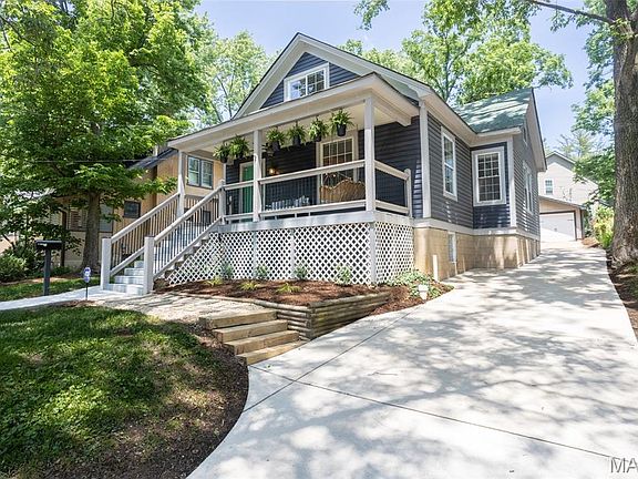 Charming century home in the heart of Webster Groves (right across the street from Larson Park) blends the perfect mix of historic character with modern updates! This 3 bed, 2 bath bungelow features gorgeous wood floors, original millwork, and timeless details that preserve its rich history. From a bygone era, the covered country-style front porch creates an unforgettable first impression—perfect for relaxing with a morning coffee, or greeting neighbors. The spacious and open flow between the family & dining rooms offers comfortable living and entertaining spaces.  The updated kitchen showcases 42" maple cabinets, granite countertops, backsplash, & stainless steel appliances.  A main level primary suite with updated bathroom has it all-- dual adult-height vanities, tile floors, tiled walk-in shower & herringbone shiplap accent wall. Two additional upper level bedrooms including a loft space, an updated hall bath; and main level laundry completes the interior.  Enjoy the 2-car detached garage, a backyard ideal for gardening or play, and a walkable location-- just minutes to local fave restaurants such as Olive & Oak and Llewellyn's.  Don’t miss your chance to own a piece of Webster Groves history!