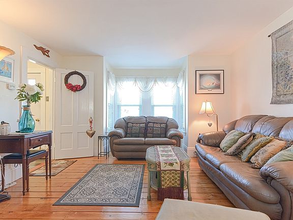 Well cared for move-in-condition 1890 Colonial with original Pine flooring, trim, baseboard, door moldings, floor to ceiling full Bay Window and loads of character. Formal Dining & Living Rooms, home office, country kitchen. The main bedroom offers a walk in closet and water views. Carefree Vinyl Shingle siding for low maintenance and crisp look year round. For water enthusiasts access from Clam Alley across the street to Public Landing. Enjoy swimming, kayaking, paddle board or for quieter relaxation sunbathing and sunset viewings. Basement has impressive storage, updated electrical and hot water with natural gas systems. Conservation land at the end of the street will take you into miles and miles of trails for sports and nature lovers. This charming Antique home is has an open and sun filled floor plan with a converted sun porch into year round home office. Back deck and yard for private outside enjoyment.