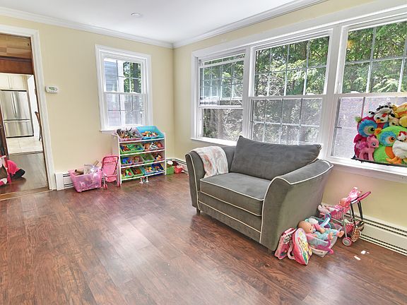 Come view this recently updated 5 bedroom Colonial in the heart of the Overlook neighborhood in Waterbury! Upon entering you will find steps leading up to the second level. To the right you will find a living room with a brick fireplace framed by a marble surround and white painted moldings. You can access another room off the rear of the LR which can be used as an office, play area or additional casual living area. To the left of the foyer you will find a handsome dining room with build in hutch and dark hardwood flooring. Through the dining room you can access the eat-in kitchen complete with granite countertops, tiled backsplash, stainless steel appliances, two sinks, and beautiful tiled flooring. Eat-in kitchen sits at the back of the room with large windows opening up to the deck area. A side door off the kitchen opens up to the deck overlooking the yard. Outstanding master bedroom with plenty of space for two full beds and furniture. This master bedroom has a walk in closet leading up to a gorgeous master bath. You will find a walk in shower with glass doors in addition to a tub and vanity. White and grey herringbone patterned floor tile with stacked white and grey square wall tile give this bathroom a fresh and relaxing vibe. There are an additional 2 bedrooms on the second floor and another 2 bedrooms with updated full bath in the attic complete with walk in shower with glass door, marble style tiled flooring & walls for the shower as well as granite covered vanity.