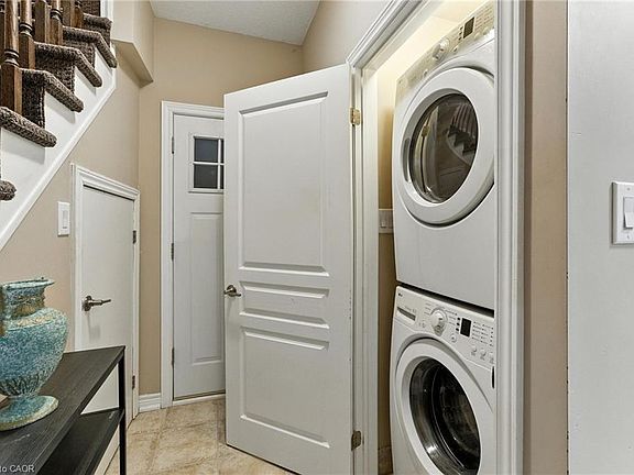 Welcome to 60-541 Winston Road a beautifully maintained executive townhouse in the sought-after Grimsby Beach neighbourhood. This bright three-level home offers upscale, modern finishes and spacious town living. The open-concept living level features hardwood flooring, a stylish kitchen with stainless steel appliances and breakfast bar as well as a spacious living/dining area that is perfect for entertaining. The upper level houses two generous bedrooms and a full 4 piece bath with tiled shower. The main level has a 2 piece bath, laundry, storage and garage with inside entry. Additional highlights include: central air, updated heat pump, and newer fridge. With easy access to highways, transit, local shops at the Grimsby beach waterfront, and the scenic waterfront trails, this is upscale living redefined.