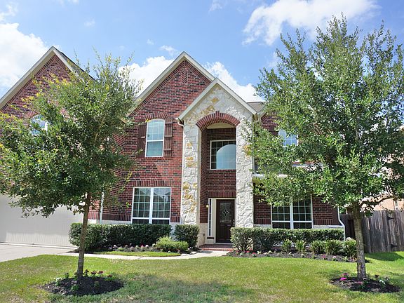 HUGE home with all the space and rooms. Almost 4,000 sqft home with Theater room, Gameroom, Study, and both Formals. Primary Bedroom on the 1st floor. Laundry room inside. 3 1/2 baths with separate shower and Tub in the Primary Bath. Covered front porch and back patio make this stone front 2 story home gorgeous. Family Den has Gaslog fireplace for those Freezing Texas winters. Bran NEW carpet installed last week. Kitchen boasts granite counter-tops, island with sink, built-in microwave and Fridge is included. Washer and dryer will stay with the home. Water softener system installed. Neighborhood Pool, and Tennis Courts. Hurry before this home is GONE!