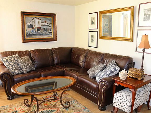 *ATTENTION TRAVELING PROFESSIONALS* UTILITIES INCLUDED, HIGH SPEED INTERNET! This spacious 3 bedroom 2 bath former artists cottage, located in a midtown neighborhood, is the perfect place for you to work, explore, and relax during your stay in Tucson. You will be centrally located for easy access to all Tucson has to offer. The property is walking distance to TMC and a short drive to Banner Medical, UofA and downtown Tucson. The master bedroom with on suit is located in the back off of the family room for privacy. You will enjoy a large living room equipped with state of the art 70" smart TV, comfortable leather couch and recliner for cozying up with a movie. The kitchen features a unique vintage stove, refrigerator, microwave, dishwasher, and is fully stocked for all your cooking and serving needs. There is ample counter space as well as a wine and coffee bar. The family room is off the kitchen with sliding doors to the patio providing additional gathering space plus a large dining table which doubles as a computer work space. Off the family room is the King bed master bedroom with on-suite 3/4 bath. There is another full bath off of the living room and the two additional bedrooms. The first bedroom has a king bed and the second bedroom has 2 full size beds. The backyard features a full privacy wall surrounding the large back yard. There is covered patio and al fresco dining area, lush gardens, a pool, hot tub, gazebo, loungers and chairs under the trees for enjoying nature. The lovely front yard is accented with up lighting in the evening. The home is only 5 miles from downtown Tucson and UofA. It is walking distance to TMC, and public transportation. There are numerous golf courses, museums, shopping, dinning, and entertainment all within minutes of the house, plus a short drive to the surrounding walking, biking, and recreational areas.