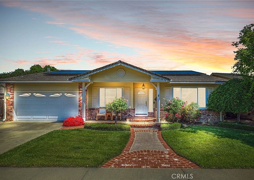 Ideally located, this stunning Pleasanton Valley home is in pristine condition and renovated throughout with high-end custom upgrades. Upon entry, guests will love the recently updated designer kitchen. Light and bright, the kitchen features custom wood cabinetry, with slow-close drawer storage and gorgeous glass cabinet doors. A glass tile backsplash, white quartz countertops, and farmhouse sink add aesthetic appeal. New stainless steel appliances include double ovens, refrigerator, drawer microwave, and dishwasher. The center island provides excellent ample space and the large wrap around counter top allows room for barstools and opens to the dining room, making it kitchen the heart of the home- a great place to host, dine, cook, and enjoy. With two large living spaces, you'll appreciate the bright and open feeling of the front room. Off the kitchen is another living space that boasts beam ceilings, custom cabinetry surrounding the gas fireplace, and charming window seat. The primary suite and bathroom is a true retreat, remodeled with 2 custom walk-in closets with beautiful cabinetry, a jetted tub, dual sink vanity, heated floors, and large, glass enclosed shower. Down the hall are two additional bedrooms with a full bathroom. The rear yard is an oasis with lush greenery, covered patio, in ground pool and spa lined in beautiful tile. Pool safety gate is included and is able to be put up and taken down at your discretion. This home has been meticulously maintained and recently updated with wood floors, recessed lighting and crown molding throughout, reinforced roof, soft water and filtered water system, fully-owned solar panels, and new pool equipment. In a neighborhood full of mature trees, this home is just minutes away from downtown Pleasanton, and walking distance to award winning schools.