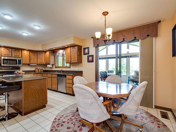 - Features: Eat-in Kitchen, Kitchen Island, Quartz Counters, Solid Surface Ctr, Tile Floor