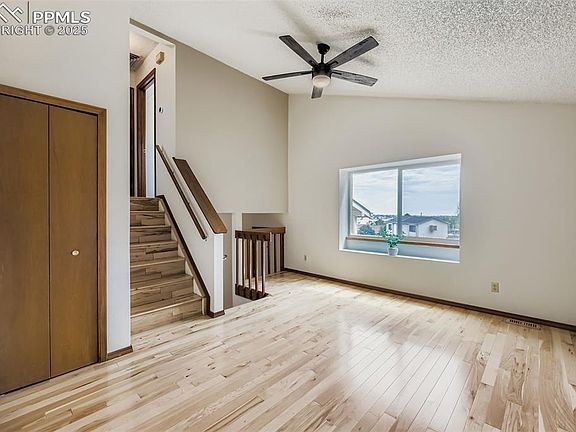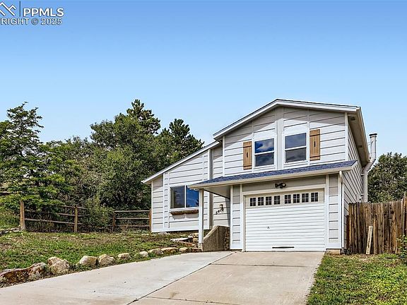 Privacy is key here... Don't pay rent ir an HOA... lives here, placed perfectly in the heart of the cul-de-sac and backing to open space and the Homestead Trail! Incredible home for the peaceful outdoor enthusiasts. Mountain Bike, Hike, Walk in nature just out your back door! Quiet with expansive views and gorgeous sunsets. Fruit trees and pines fill the nearly quarter acre lot... plum, cherry, apple, crab apple... lilacs, wildflowers, roses, fire pit area, stone patio... spacious and private yard to enjoy daily and to impress your friends and family during your cookouts. The terraced yard adds such character and beauty... uniquely appointed. Many plantings envelope this magical retreat. Sparkling city views! Open and newly updated kitchen with large stainless sink. New tub, tile surround and hardware... clean and pretty. Generous sized bedrooms with walk-in closets, gleaming hardwood flooring throughout; laundry is conveniently located upstairs with the washer/dryer included. Warm sunshine envelopes this amazing layout; no carpet; wood burning stove located in the surprisingly warm family room, an added bonus for those chilly Colorado evenings. This family room is very flexible and could be appointed as an amazing den, office, music room, truly anything you wish... even a third bedroom! There is a clean one car garage attached and good parking space on the driveway for campers, RV's, extra vehicles, toys, etc.. Close to award winning schools, parks, shopping, movies, quiet and easy living in the beautiful home. Easy to the Powers Corridor, Peterson AFB, NORAD, Fort Carson Army Post, and so much more. Ideal ability to own a gorgeous home and never pay rent again!