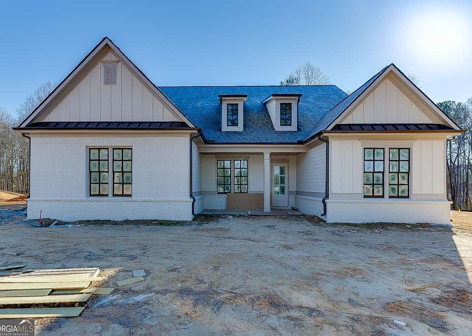 The Ansley plan by Tipton - Craftsman Style Ranch home features 4 bedrooms, 3.5 bathrooms, 3rd car garage on beautiful 1.702-acre lot with NO HOA. Enter from the covered front porch to the large foyer with 10' ceilings on the main level. A flex room is perfect for a private dining room, study or your individual needs. Across the hall are two secondary bedrooms and a Jack-n-Jill bathroom. This open-concept living area features a kitchen that overlooks the breakfast area and family room. The family room is finished with exposed beams, built-in cabinetry, and a brick fireplace, creating a refined and inviting atmosphere. The luxury kitchen has shaker-style cabinets to the ceiling, quartz countertops, SS appliances with a double oven, eat-in island and walk-in pantry. Oversized Primary suite on main includes gorgeous spa-style super shower, spacious vanity and large walk-in closet. The Main Level also features a mudroom with lockers, powder room and laundry includes cabinets and tub sink. The second level has 9' ceilings and an oversized bedroom, bathroom and a large media room, plus additional storage space. Beautiful design touches throughout! Enjoy the privacy of the large lot on the covered rear porch with a brick fireplace, perfect for year-round entertaining and relaxation. Easily accessible to all Cumming & Dawsonville has to offer. Please use caution when entering, as the home is still under construction.