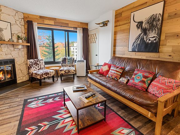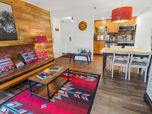 Beautifully-renovated 1BR/1BA condo in Silver Creek Lodge with ski-in/ski-out access! Sleeps six with queen bed, twin bunk beds, and sleeper sofa. Interior features include luxury vinyl plank flooring, granite counters, stainless appliances, modern backsplash, updated vanity, Smart TVs, and in-unit washer/dryer. Relax by the cozy electric fireplace or step onto the balcony to enjoy fresh mountain air with pool and wilderness views. Silver Creek offers indoor/outdoor pool, hot tubs, sauna, fitness room, tubing park, access to night skiing, The Locker Room bar and grill, front desk for check-in, free shuttle service to the Village and Western Territory, and ample parking. A kids zone is a paradise for children. An excellent rental property or your own mountain retreat!
