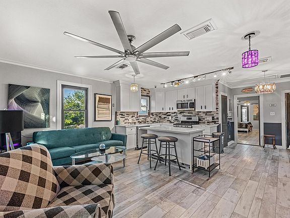 Come discover an Ideal Galveston retreat to call home or turn into a short-term Airbnb rental. Flexible 2/3 bedrooms along with 2 baths, the versatile flex room that can easily become an extra bedroom or room to lounge. Each room boasts colorful art and unique designs, adding character to the space. The backyard is fully fenced and comes with storage sheds for added convenience. A new driveway and one-car garage, along with front and back parking options, make life easier. Stay comfortable with central A/C and heat, relish the wood flooring upstairs and tile downstairs. Recently redone, the balcony and deck offer the perfect outdoor retreat. Give us a call to schedule an appointment or just check out the Virtual Tour link!