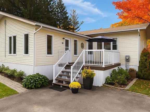 Welcome to Candlelight Village, one of Simcoe Countys most desirable adult-living communities, just minutes from downtown Midland and the shores of Georgian Bay. This beautifully updated double-wide modular home offers the perfect balance of comfort, privacy, and community ideal for retirees or anyone ready to downsize and simplify life.Set among mature trees in a quiet, friendly neighbourhood, this home feels serene and inviting. Step inside and youll be amazed by the bright, open layout featuring two bedrooms plus a family room perfect for guests, hobbies, or a 3rd bedroom . The spacious living and dining areas flow effortlessly into a modern kitchen designed for easy, comfortable living. Everything is on one level, making the home accessible and functional for everyday life.Pride of ownership shines through in every detail. Enjoy your morning coffee on the covered deck, or tend to your garden in the sunshine. With multiple outbuildings, there is a plenty of extra storage for tools and seasonal items, so everything stays neat and organized.Residents of Candlelight Village appreciate the peace of mind that comes with low-maintenance living. Monthly fees include water, snow removal, and road upkeep, allowing you to focus on what matters most. The community also offers an optional clubhouse and social club, where you can connect with friendly neighbours at your own pace.Just minutes away, Midland offers all the essentials shops, restaurants, healthcare, marinas, walking trails, and cultural attractions like the Wye Marsh and Sainte-Marie Among the Hurons.If youre seeking a quiet, affordable, and comfortable lifestyle, this home delivers everything you need for a truly worry-free retirement.