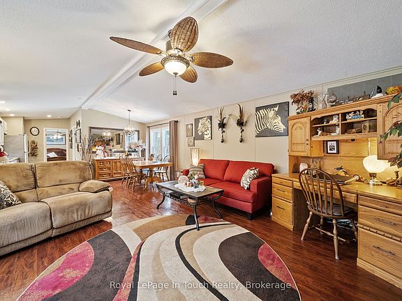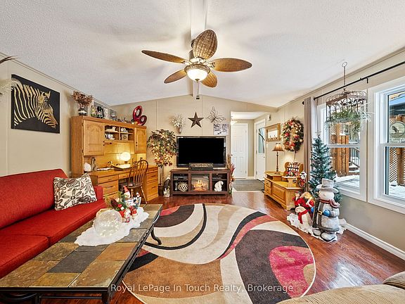 Welcome to Candlelight Village, a well-established 50+ Adult Community in Midland, located just minutes from Beautiful Georgian Bay and the conveniences of the downtown area. This Meticulously cared for 2-Bedroom, 1-Bath, 1,041 sq ft, 16' Wide modular home sits on a Large, Beautifully Landscaped Lot featuring Numerous Perennial Gardens, Mature Trees, Manicured Lawns, a New 20' x 26' Deck and Large Gazebo for added Privacy. Inside, the Bright, Open-Concept Layout offers ample Storage with multiple Large Closets and a Kitchen Pantry, along with Recent Updates including a Remodeled 4-Piece Bathroom and newly Updated Kitchen Countertops and Cupboards. The home includes 200-Amp electrical service with Economical Electric Forced-air Heating and Air Conditioning as well as an Optional Generator available to be purchased for added peace of mind. Residents of Candlelight Village have access to a Clubhouse with weekly Activities and an optional Social Club. Enjoy the Beauty of Country Living while still being close to Midland's Essential Health Care services, Shopping, Marina's, Walking Trails, and all the Recreational Opportunities living in Simcoe County has to offer. The home is only minutes to Hwy400, and a short drive to Barrie and Orillia! This home presents a Comfortable, Secure, and Economical option for those looking to Enjoy a Relaxed Retirement Lifestyle in the Georgian Bay area. Additional Lease Agreement Details are available upon request.