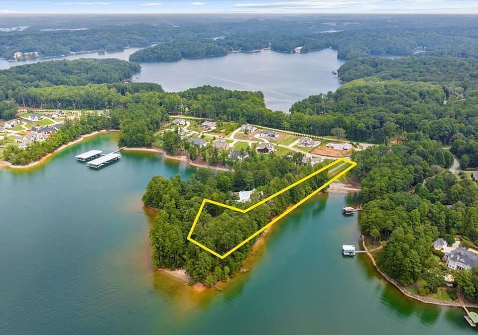Positioned within the sought after Bay Pointe community, this extraordinary 1.51 acre lake lot with Private drive, Gated access, and Fence offers an unrivaled setting for your custom estate. Surrounded on three sides by water, with more than 1200 feet of pristine shoreline, a Corps of Engineers walking trail and sandy beaches. the property combines natural beauty and panoramic views with exclusivity and privacy. From sunrise reflections to sunset horizons, every vantage point captures the essence of luxury lakefront living. With a build-ready homesite, you have the rare opportunity to create a residence tailored to your lifestyle-whether it's a contemporary retreat with walls of glass, or a timeless lakefront sanctuary. This is more than a lot; it's the canvas for your legacy on the water. Deeded 12 X 28 boat slip, on Dock A, slip 22, provides an easily accessible position. The Community Dock has water and power, and is golf cart accessible. Quick access to Atlanta via I-985/I-85. Water and electric are on site. Septic needed. House plans are available upon request. Don't miss this opportunity to own your private paradise. Weissman is the preferred closing attorney.