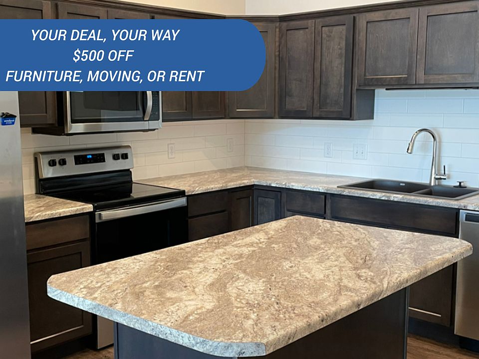 Get $500 off apply it toward furniture, a moving job, or rent.