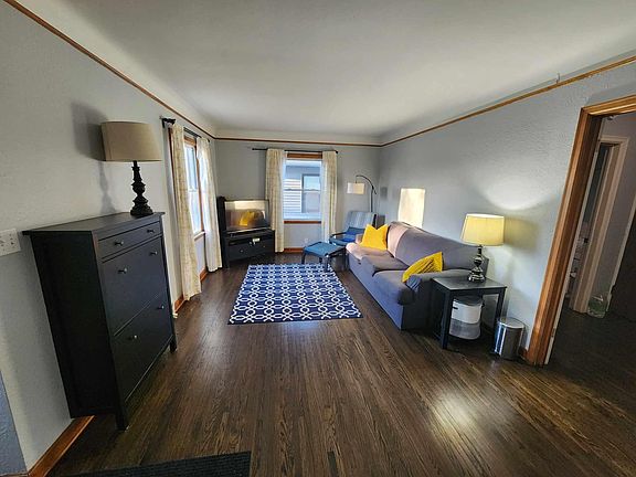This charming stucco home has lots to offer. Your first steps into the home are into the large living room that is highlighted by the beautifully refinished hardwood floors. The kitchen has been recently updated, newer appliances and a nice sized eating area. The upstairs has a large bedroom as well as a great space for a home office. There is potential to finish the basement, add another bedroom and bathroom. Located close to the falls, parks, airport and trails.