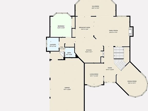 layout featuring a 2-story foyer, split staircase, and picturesque windowed sunroom. Cooks' kitchen opens to a great
