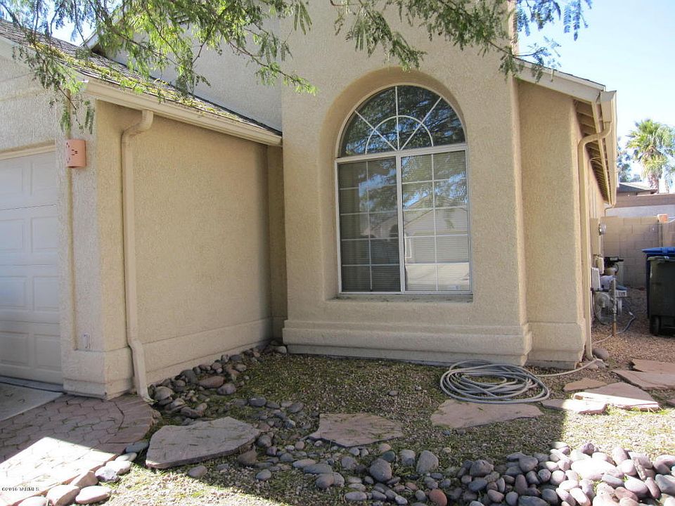 Just listed! Charming 3 Bdrm in Midvale Park. Nicely landscaped entryway leads to Covered Front Porch. Fireplace and Entertainment Center in Living Rm. Vaulted ceilings, plant shelves and architectural detail throughout. Wood laminate in Lv Rm and hall. Spacious tiled kitchen and Breakfast Nook. Refrigerator incl. Huge Master Bdrm with sliding glass door to patio. Double sinks at master vanity. Very clean full baths! Bedroom 2 has tile floor. Front Bedroom 3 is carpeted with an arched window. Outdoor Cantina under a Covered Patio, built-in BBQ island, custom hardscape for 2 seating areas. Stuccoed and painted block wall. Security screen door and alarm prewire. 2-car garage. Laundry closet - Washer and Dryer stay. Easy access to shopping, restaurants and I-19. Low HOA!