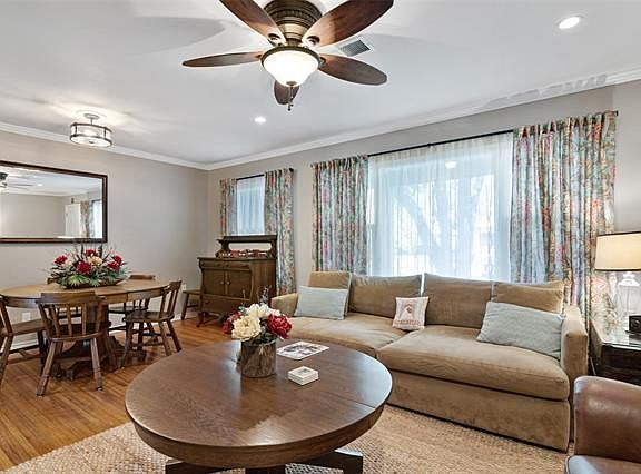 Norman Rockwell type neighborhood is close to Trinity Trails and downtown FW. This dollhouse has the original hardwood floors, NO POPCORN CEILINGS, silestone countertops, windows replaced, the work is done, just move in. This location is one of the best in Fort Worth and ever so popular. These generous bedroom sizes are hard to find even in new homes. Remodeled bathroom, decorator paint colors, and a large fenced backyard for pets, kids and outdoor barbecue parties. Large eat in kitchen plus a dining room space in the living area. Don't wait because they are not lasting long on the market in this area. Great home for just getting started or retiring to sit on your shaded front porch.