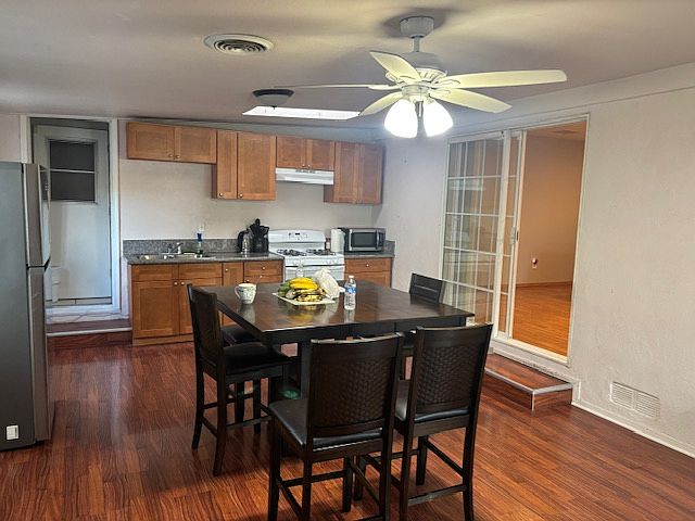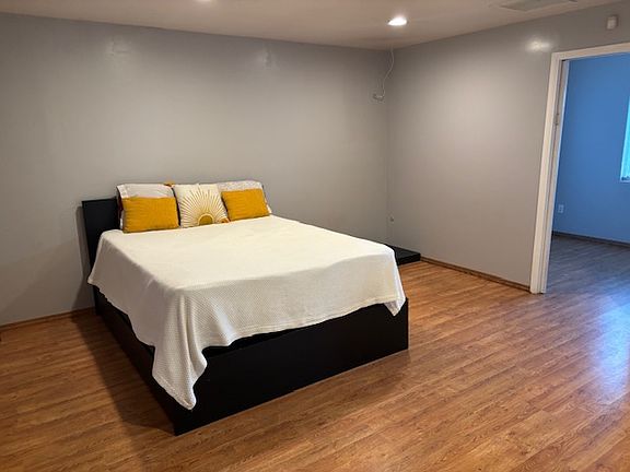 Freshly remodeled two bedroom one is extra large size second room is connected to the first. Unit is attached to the front has its own entrance and parking in street. Near an elementary school and lots of businesses nearby. The freeway is very close for work. Open floor plan also the floors are new. House is shared utilities with front unit back unit is responsible for 35% of the bills. owner is looking for one year lease to start. No smoking in units. Parking is off street driveway is shared from front and back unit common area.